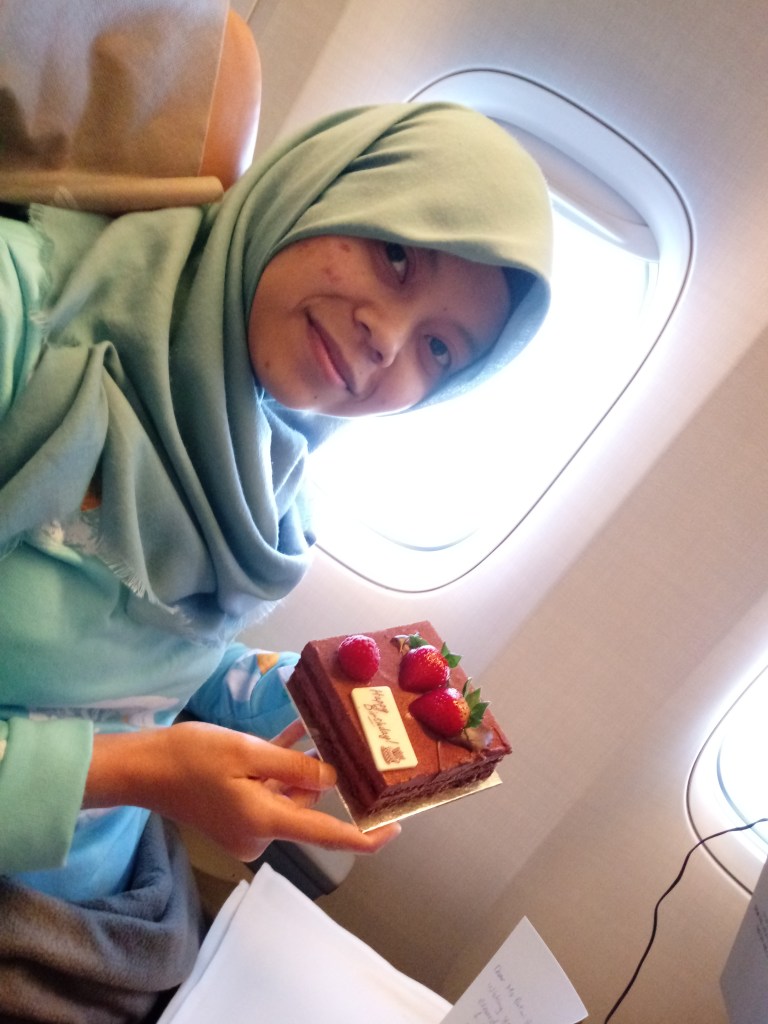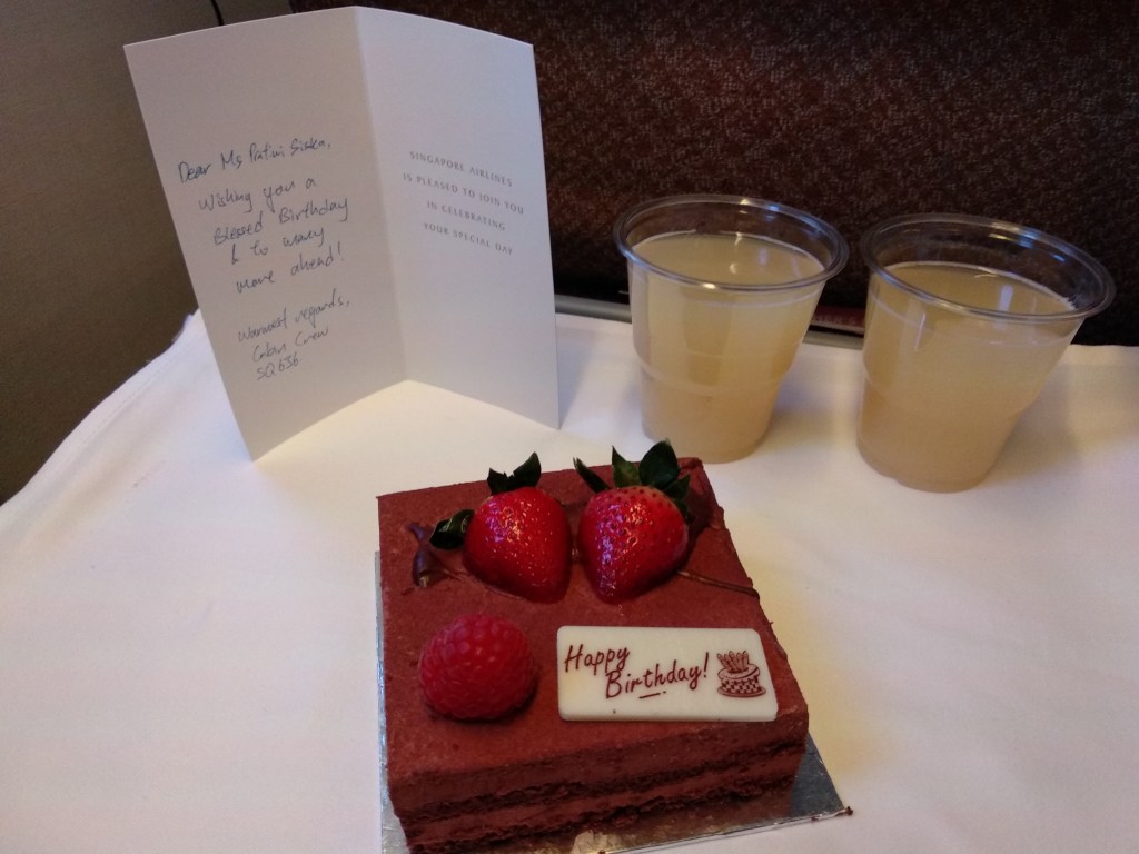 At first, I didn’t know that SQ (Singapore Airlines) would like to give their passengers a cake on their important day, such as birthday, anniversary, and others. Upon a request of course, and it’s all free even for an economy class passenger, like me.