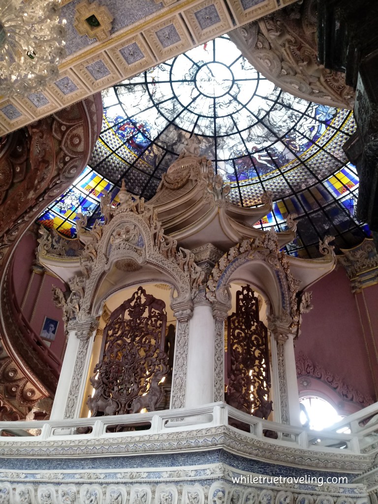 Sebelum memasuki museum, pengunjung diwajibkan melepas alas kaki. Selangkah saja masuk ke dalam museum, mata akan langsung dimanjakan oleh ukiran dinding berwarna merah muda yang sangat detail, lengkap dengan ornamen-ornamen yang dipercantik oleh mozaik keramik berwarna-warni dan sentuhan warna emas. Atapnya dihiasi kaca patri dengan dominasi warna putih, biru, merah, dan kuning.