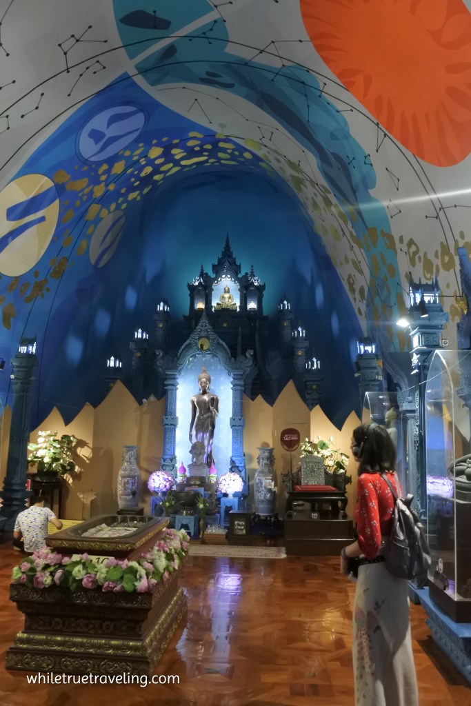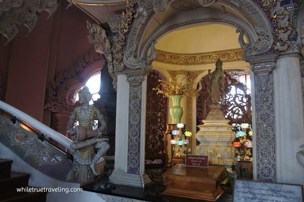 Di sebelah kanan dan kiri ruangan terdapat display patung-patung Buddha dari berbagai macam era, di antaranya Lopburi, Ayutthaya, Lanna and Rattanakosin (sumber: wikipedia).