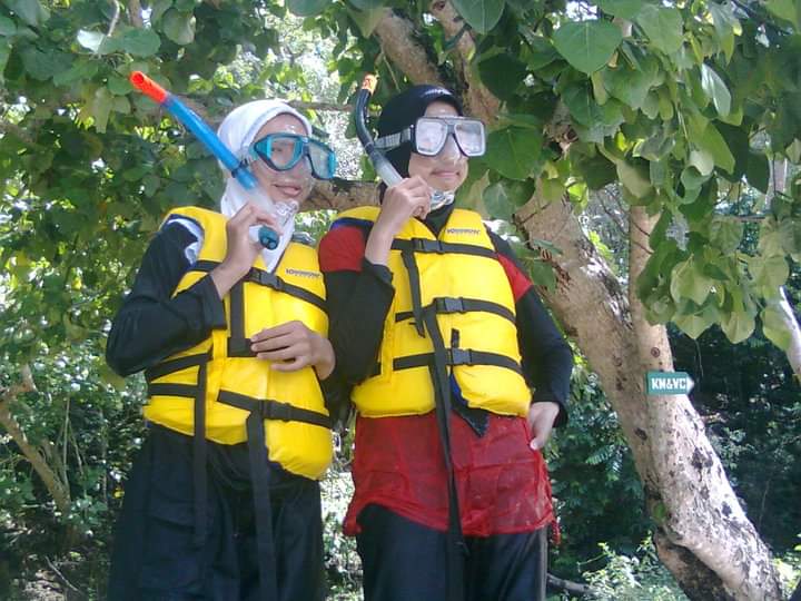 Aku dan Itonk nampaknya yang paling puas snorkeling. Saat yang lain sudah lelah dan memutuskan untuk istirahat saja di pinggir pantai, aku dan Itonk bolak-balik ke laut. Asa diulangtahunkeun, ucap teman-temanku. Seperti dirayakan, seperti diberi hadiah, seperti jadi yang ulang tahun, apa yang diinginkan dikabulkan. Sulit juga menggambarkannya. Paham maksudku? 😀