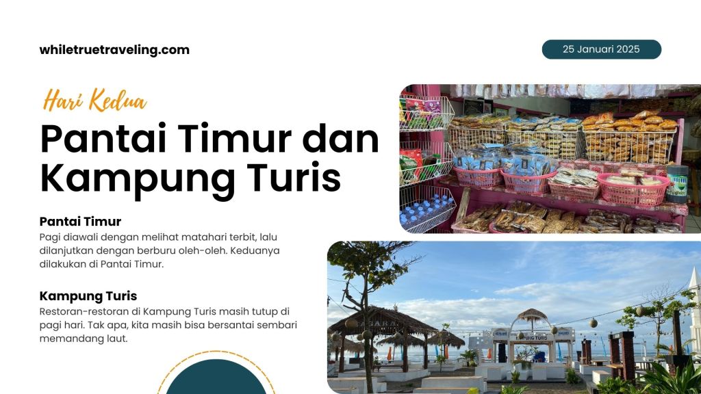 Diawali dengan melihat matahari terbit di Pantai Timur, lalu berburu oleh-oleh juga di Pantai Timur.