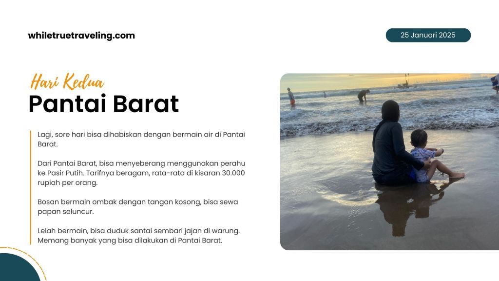 Sore harinya ditutup dengan bermain air di Pantai Barat bersama si buah hati.